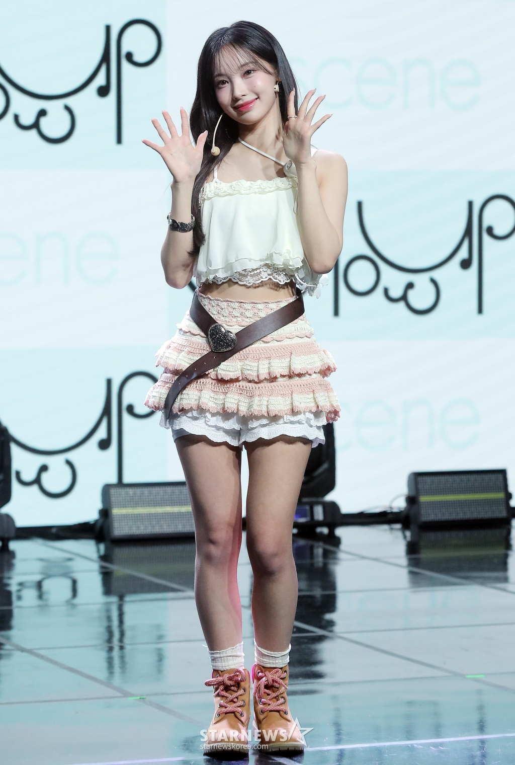 그룹 리센느(RESCENE) 원이가 5일 오후 서울 강남구 청담동 일지아트홀에서 진행된 두 번째 미니 앨범 'Glow Up'(글로우 업) 발매 기념 쇼케이스에 참석해 포즈를 취하고 있다.