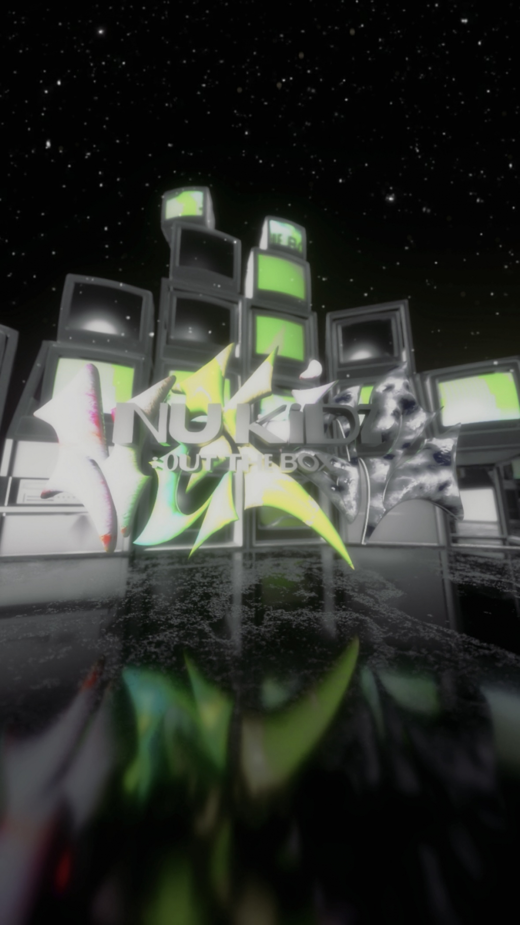 먼저 로고 시퀀스에는 밤하늘을 배경으로 고장 난 TV 오브제들이 놓여있는 가운데, 펑키한 매력의 앨범명 'nu kidz: out the box' 타이틀 로고가 등장해 눈길을 끈다. 동시에, "nu kidz!"라고 외치는 멤버들의 목소리도 등장해 신보에 대한 궁금증을 증폭시켰다.