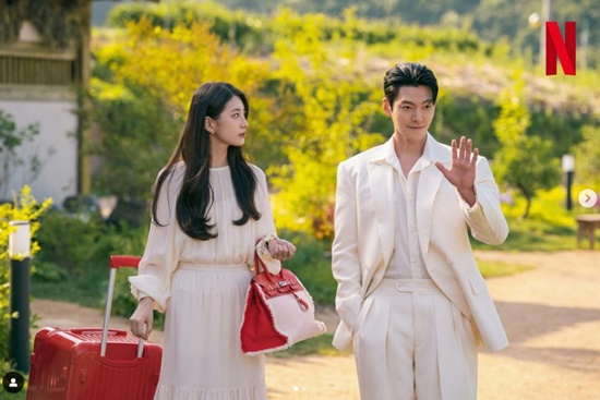 수지는 지난 4일 자신의 개인 계정에 넷플릭스 '다 이루어질지니' 스틸 사진을 게재했다. 김은숙 작가의 신작이자 수지와 김우빈이 주연을 맡은 '다 이루어질지'의 스틸컷에는 수지와 김우빈이 환한 모습으로 눈길을 끈다.