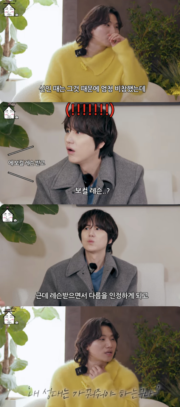 데뷔 20년 차에도 보컬 레슨을 꾸준히 이어간다는 성실함에 규현이 감탄하자 대성은 "신인 때는 그것(보컬 레슨을 계속해야만 하는 실력) 때문에 엄청 비참했다"라고 고백했다.