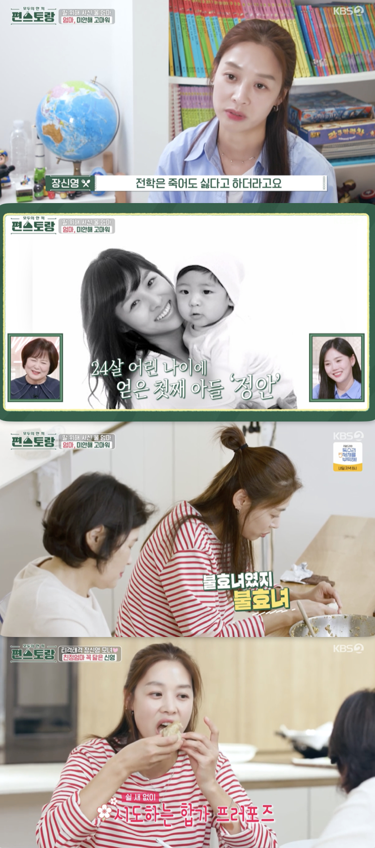 7일 방송된 KBS 2TV 예능 프로그램 '신상출시 편스토랑'에는 반찬을 싸들고 장신영의 집을 찾은 모친의 모습이 그려졌다.