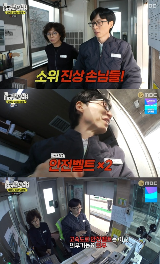 유재석은 "그래도 명절에 못 쉬지 않냐"고 하자 근무자는 "너무 좋다"고 말해 폭소케 했다.