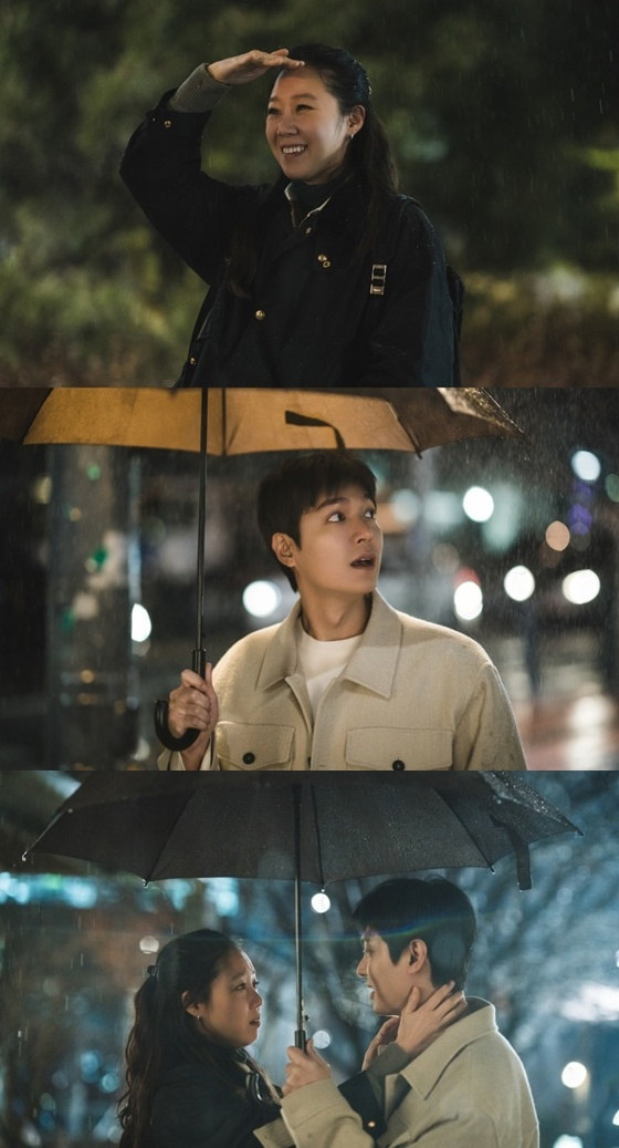 우산 아래 한 몸처럼 서로를 꼭 껴안은 두 사람은 꿀 떨어지는 눈빛을 주고받으며 솔직하게 애정을 표현하고 있다. 우주에서 이브 킴에게 지구에 내려오면 함께 비를 맞아보자던 공룡의 소원이 드디어 이뤄진 만큼 공룡과 이브 킴의 로맨스에도 더욱 속도가 붙을 예정이다.