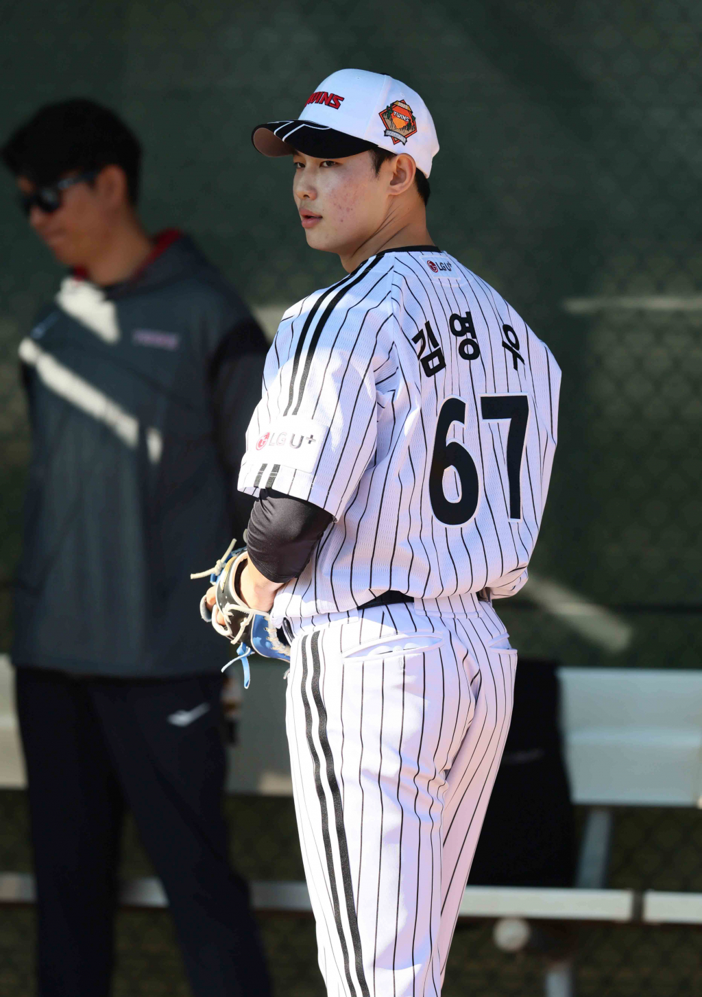 혹독했던 마무리 캠프 훈련도 꿋꿋이 버텨낸 끝에 현재 LG 스프링캠프에서 쾌조의 컨디션을 자랑하고 있다. 지난 9일 치러진 4번째 불펜 피칭에서 김영우는 직구 15구, 커브 6구, 포크 6구, 슬라이더 2구 등 총 29개의 공을 던지면서 직구 구속이 평균 시속 148.2㎞, 최고 151.1㎞까지 나왔다.