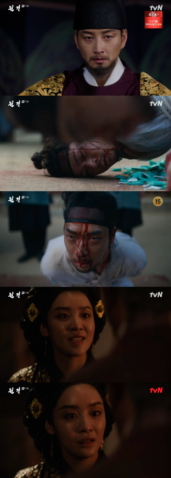 10일 방송된 tvN X TVING 오리지널 드라마 '원경'에서는 원경(차주영 분) 집안을 몰살시키는 이방원(이현욱 분)의 모습이 그려졌다.
