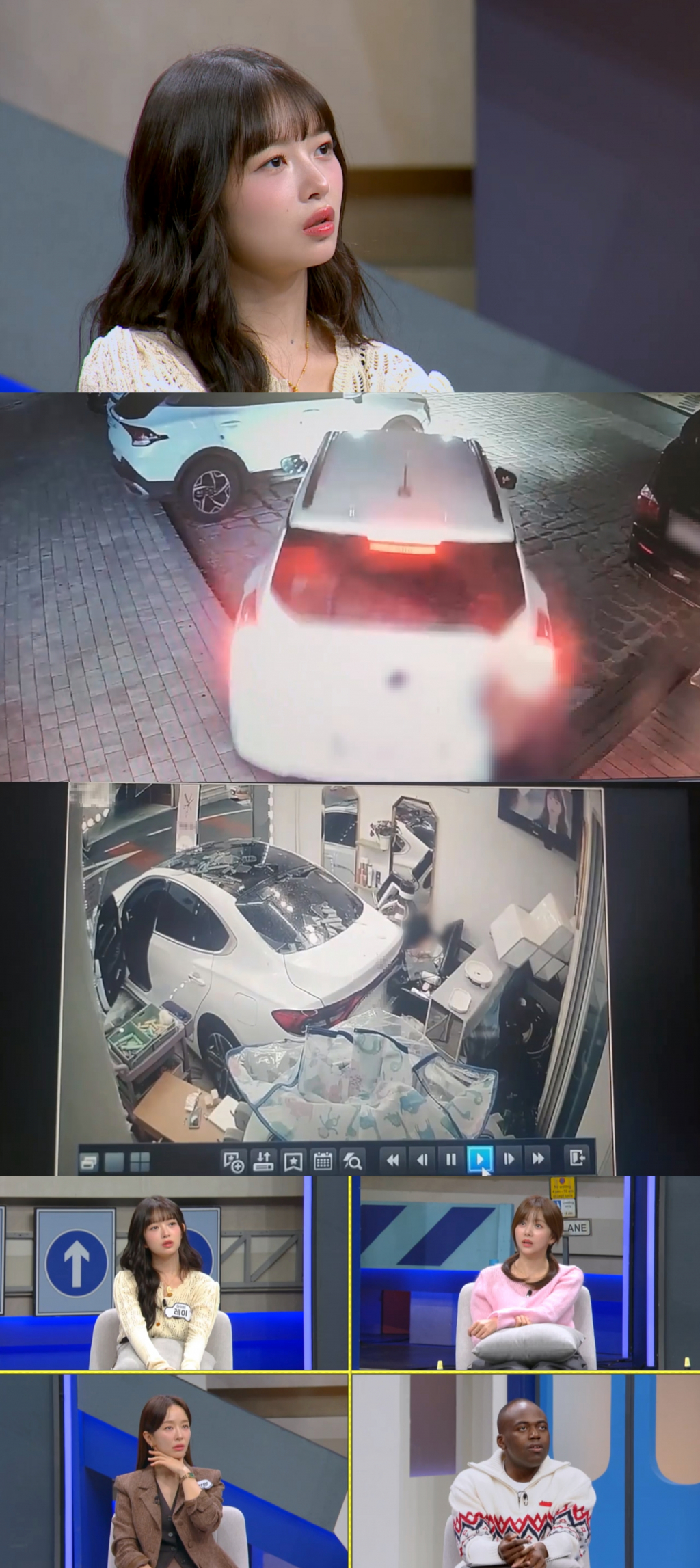 더불어 공개된 CCTV 영상에서는 평온했던 미용실에 한 차량이 후진으로 돌진하는 모습이 그려진다. 운전자가 가파른 길에서 사이드 브레이크를 채우지 않아 발생한 충격적인 사고에 아이브 멤버 레이는 "어떻게 이럴 수가 있지"라며 어이없어한다.