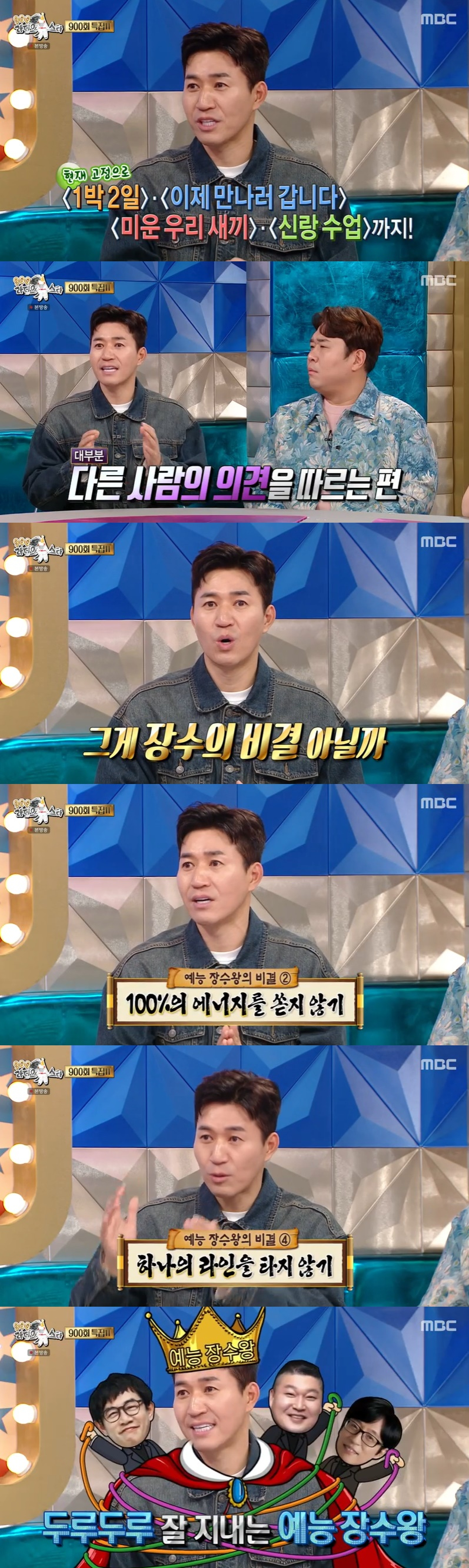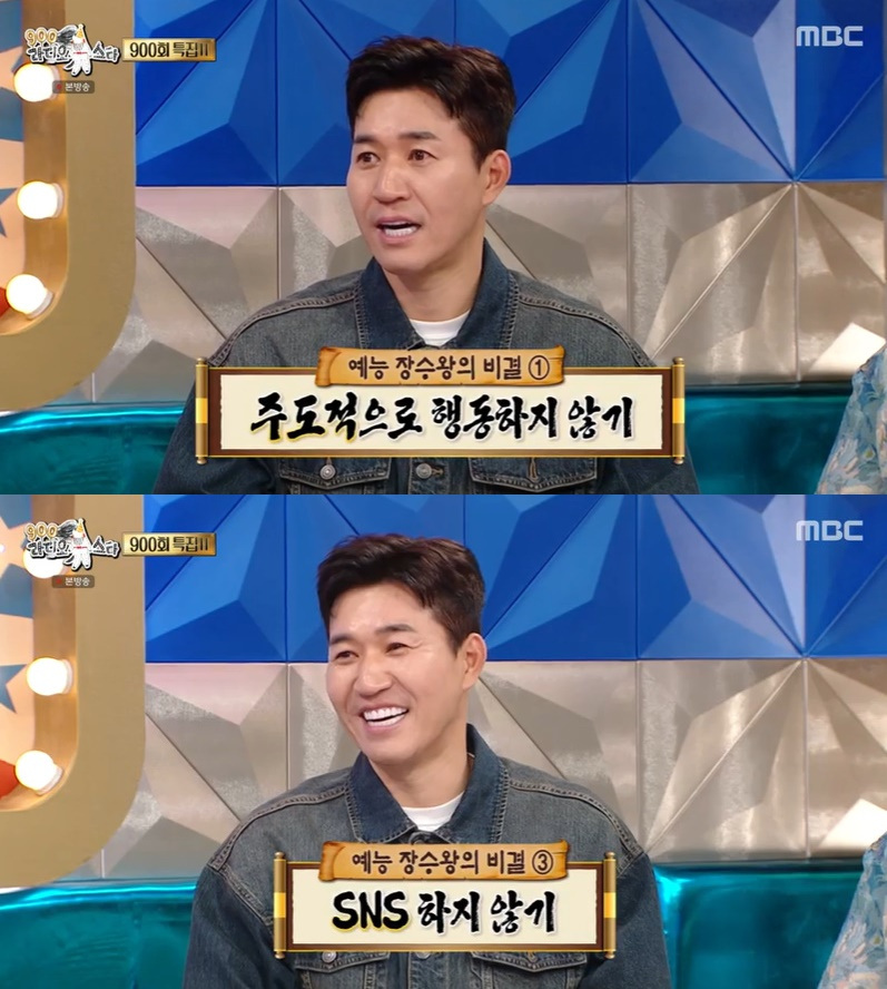 그는 자신만의 예능 생존법으로 "주도적으로 행동하지 않는다. 뭔가를 하자고 하지 않는 게 장수의 비결이 아닌가 싶다"고 말했다.