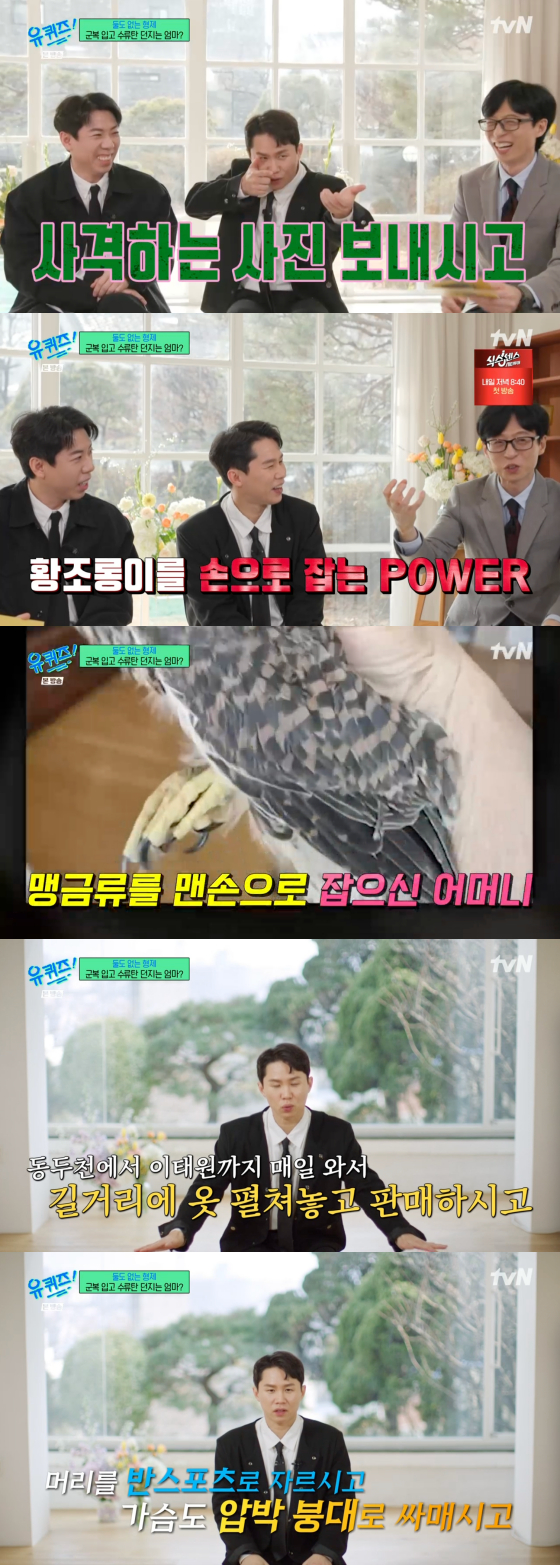 이날 유재석은 양세형, 양세찬에게 "어머니가 여성 예비군 수료도 하셨다는데 맞냐. 멋있으시다"고 물었다.