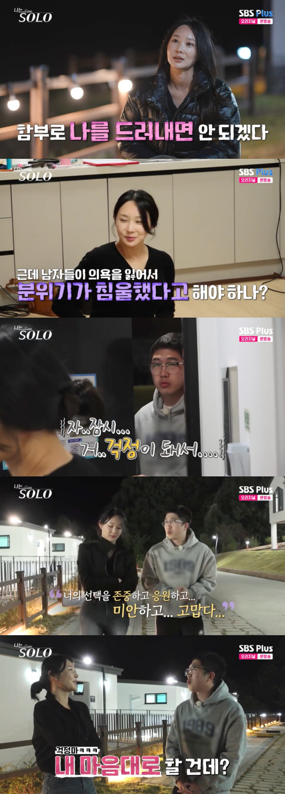 영식이 "내뱉은 말은 주워 담을 수가 없지 않냐. 네가 그런 부분에서 실망했다면 너의 선택을 존중하고 응원하고 미안하고 고맙다. 이것도 나다. 후회하지는 않는다. 내 생각하지 않고 네가 하고 싶은 대로 해라"고 말하자 옥순은 "내 마음대로 할 것"이라고 또다시 영식에게 선을 그었다.
