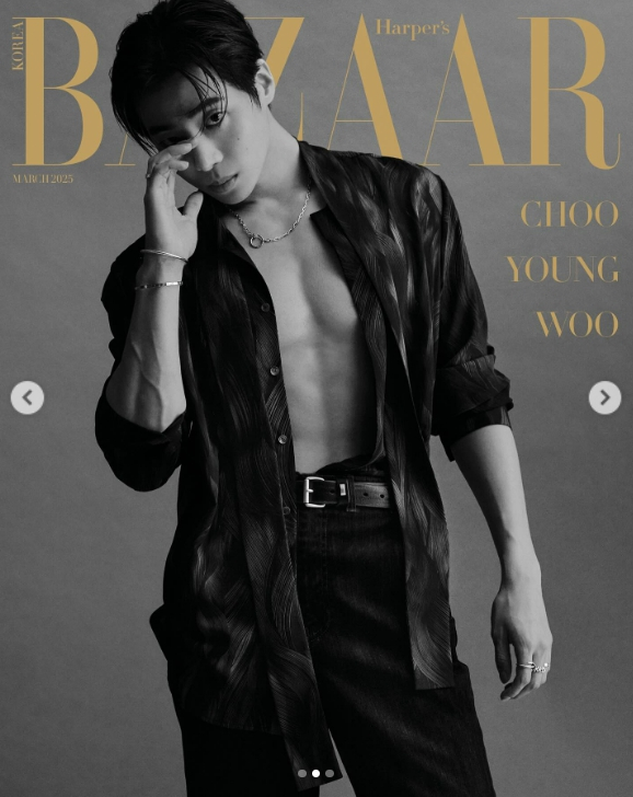 사진 속 추영우는 롱 셔츠 단추를 풀어헤친 채 탄탄한 복근과 가슴 근육을 뽐내고 있는 모습. 추영우는 퇴폐미 가득한 눈빛과 핏줄이 한껏 솟은 전완근을 과시하며 전 세계 여심을 뒤흔들었다.