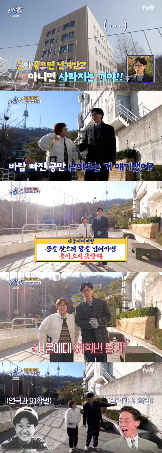 이에 송은이는 "바람 빠진 공만 날아오기도 했다"면서 "선배들 중에서는 공 찾으러 담을 넘었다가 돌아오지 못했다는 전설도 있다"고 서울예대 전설을 곱씹었다.