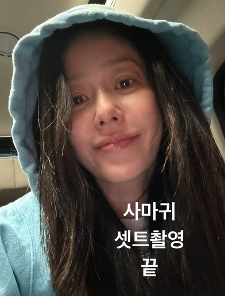 고현정은 14일 자신의 계정에 "사마귀 세트촬영 끝"이라며 사진을 올렸다.