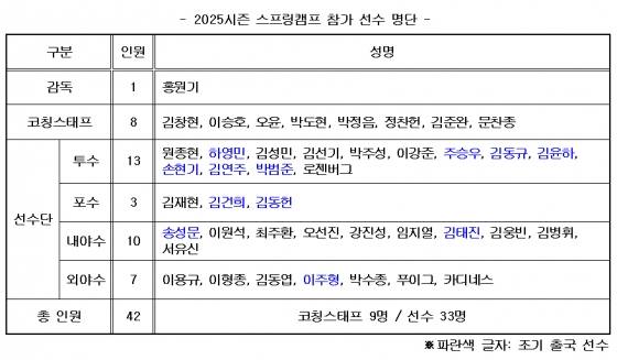 앞서 키움은 미국 애리조나 1군 스프링캠프 명단을 발표했는데 '전체 1순위' 정현우를 비롯한 신인 선수가 단 한 명도 포함돼 있지 않으면서 주목을 끌었다. 이유는 어린 선수들의 집중력을 더욱 극대화하기 위해서였다.