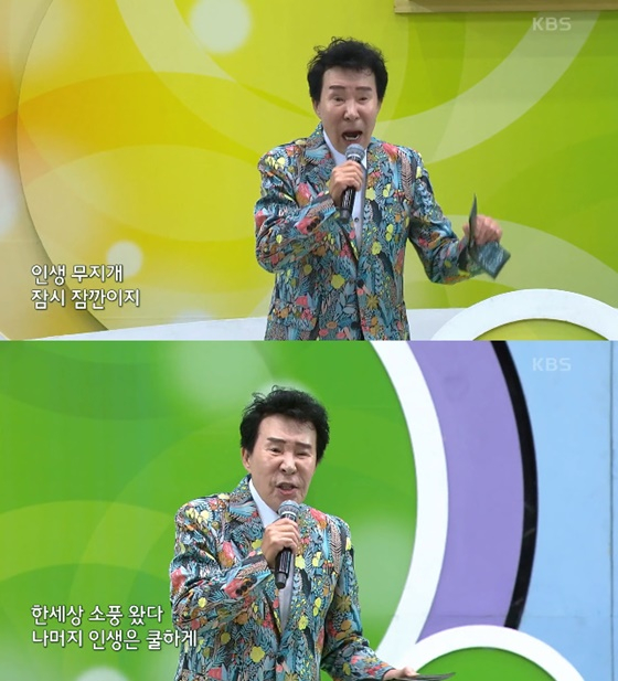 무대에 오른 고 송대관은 '지갑이 형님'을 열창했다. 고 송대관은 지갑을 손에 들고 퍼포먼스를 펼쳤다. 또한 "한세상 소풍 왔다, 나머지 인생은 쿨하게"라는 가사를 노래하기도 했다.