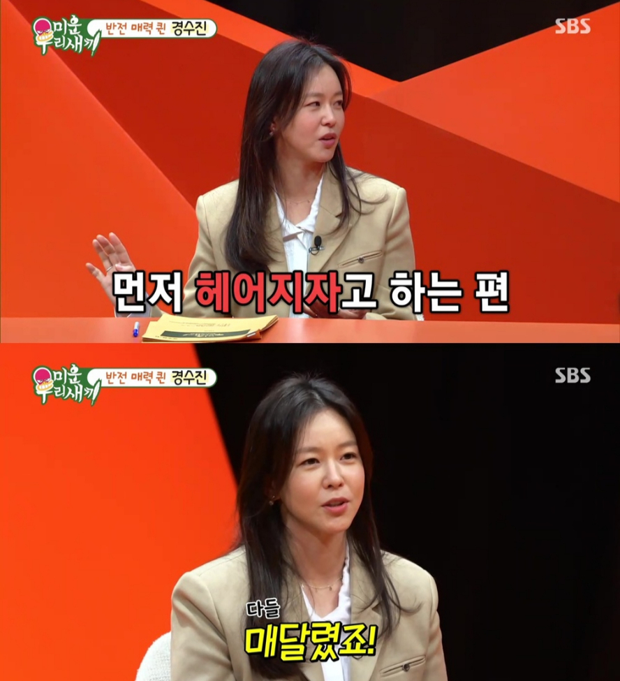 이날 스페셜 MC로 출연한 배우 경수진은 "연애하면서 단 한 번도 차인 적이 없다"고 고백해 이목을 끌었다. 경수진은 연애 스타일에 대해 "최소 2년 이상은 만나야 그 사람의 진짜 모습을 알 수 있다"며 "몇 번의 기회를 줘도 안 되면 '나에 대한 노력이 없구나'라는 생각에 놓게 된다"고 설명했다.
