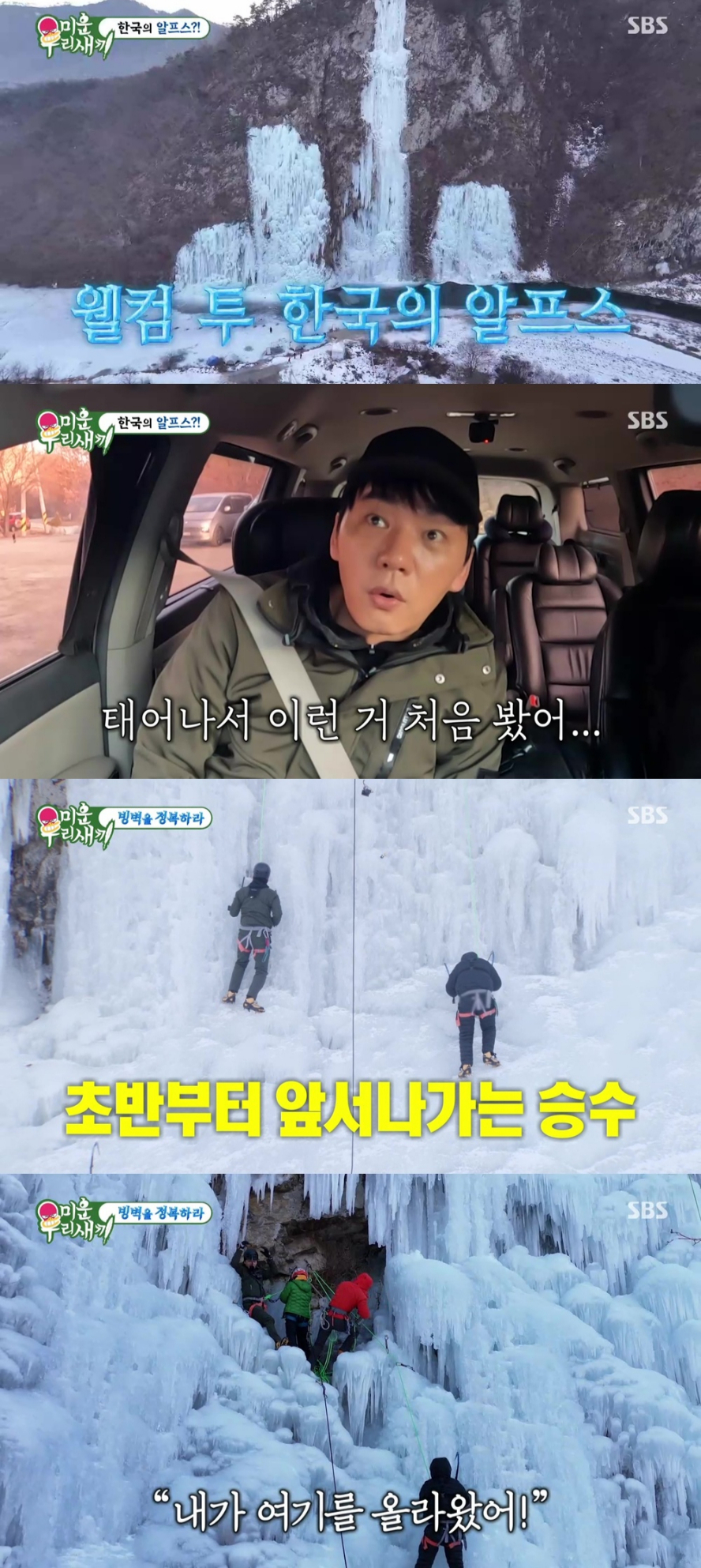 한편 김승수와 이상민은 눈 덮인 강원도에서 국내 최대 규모 빙벽 등반에 나섰다. 강원도 산자락에 펼쳐진 높이 100미터가 넘는 얼음 절벽에 도착한 두 사람은 놀라움을 감추지 못했다.