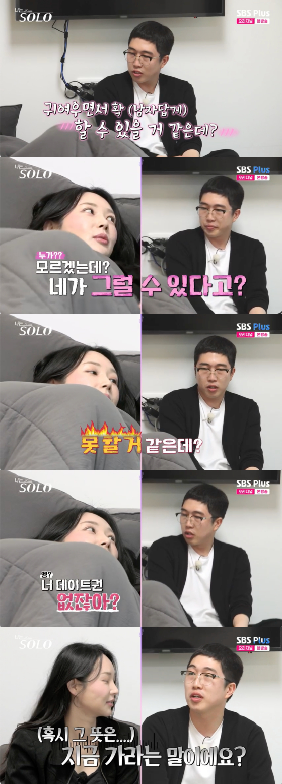 옥순은 "남자가 귀여운 건 별로"라고 답했고, 영식은 "귀여우면서 확 할 수 있을 거 같은데"라고 자신의 매력을 은근히 어필했다.