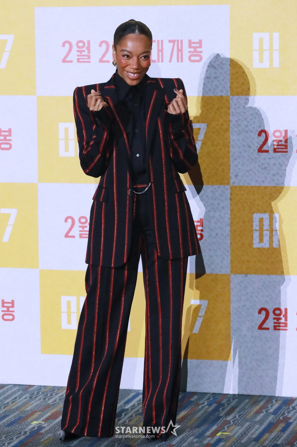 배우 나오미 애키가 20일 오전 서울 강남구 메가박스 코엑스에서 진행된 영화 '미키17'(감독 봉준호) 기자간담회에 참석해 포즈를 취하고 있다.