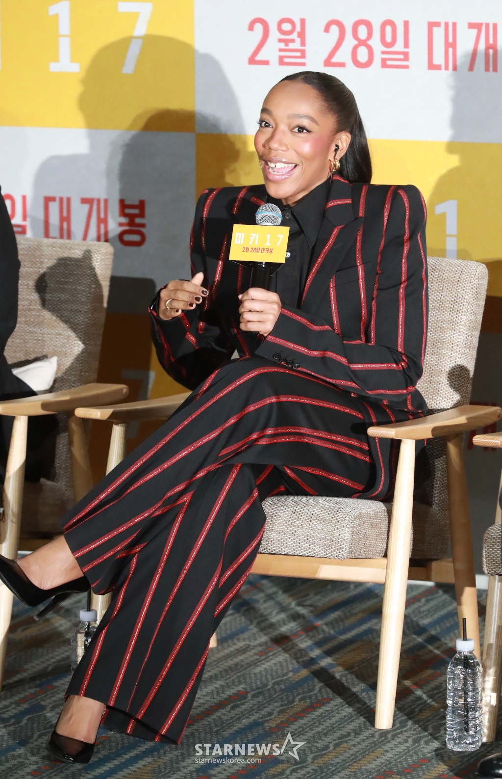 배우 나오미 애키가 20일 오전 서울 강남구 메가박스 코엑스에서 진행된 영화 '미키17'(감독 봉준호) 기자간담회에 참석해 인사말을 하고 있다.
