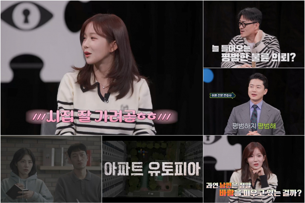 한편 이날의 '사건수첩'에서는 남편의 차에서 여성의 스카프와 쥬얼리 숍 영수증 등을 발견한 의뢰인이 "남편의 불륜이 의심된다"며 탐정사무소를 찾았다. 의뢰인은 "딸이라면 끔찍하게 생각하던 사람이, 딸이 뭘 하자고 해도 시큰둥하고 전과 다르다"며 의심의 싹을 틔웠다. 이에 데프콘은 "평범한 불륜 의뢰다"라며 너스레를 떨었고, 이혼 전문 변호사 남성태도 "평범하다"며 공감해 조현영을 당황하게 했다.