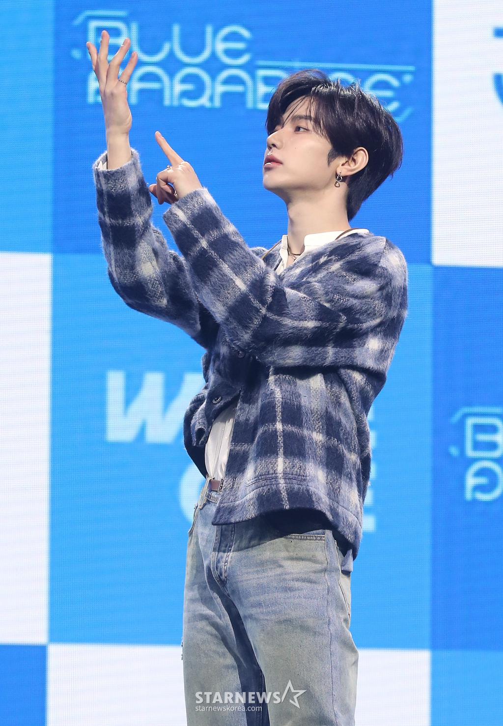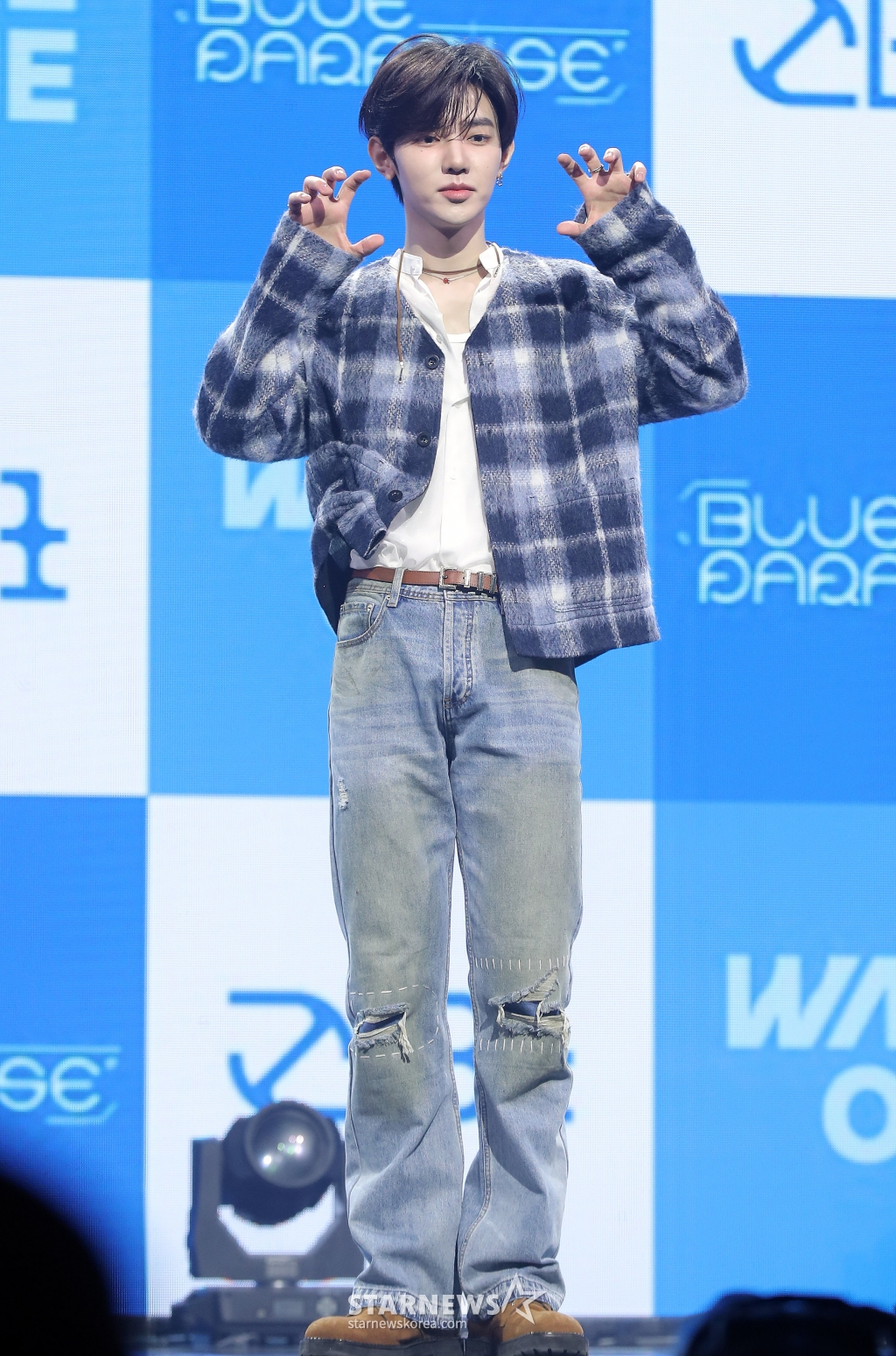 그룹 제로베이스원(ZEROBASEONE) 장하오가 24일 오후 서울 용산구 블루스퀘어에서 진행된 미니 4집 '시네마 파라다이스(CINEMA PARADISE)' 발매 기념 쇼케이스에 참석해 포즈를 취하고 있다.