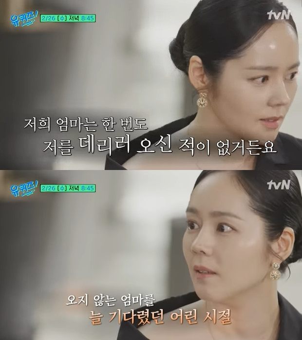 이어 한가인은 가정사를 언급하며 "엄마는 한 번도 저를 데리러 오신 적이 없다. 엄마가 안 오실 걸 알지만 기다렸다"면서 울컥하는 모습을 보여 눈길을 끌었다.