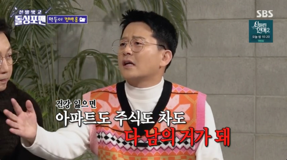 김준호는 "건강을 잃으면 아파트, 주식, 자동차 다 남의 것이 된다. 다 필요 없는 것"이라고 건강의 중요성을 강조했다.