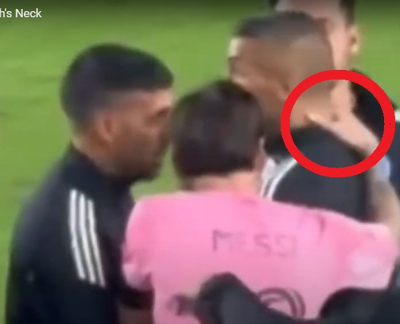 이어 메시는 메흐디 발루치 뉴욕시티 코치에게 다가가 목덜미를 강하게 누르며 뭐라 이야기했다. 발루치 코치가 깜짝 놀라 쳐다보자 메시는 계속 얘기한 뒤 돌아섰다.