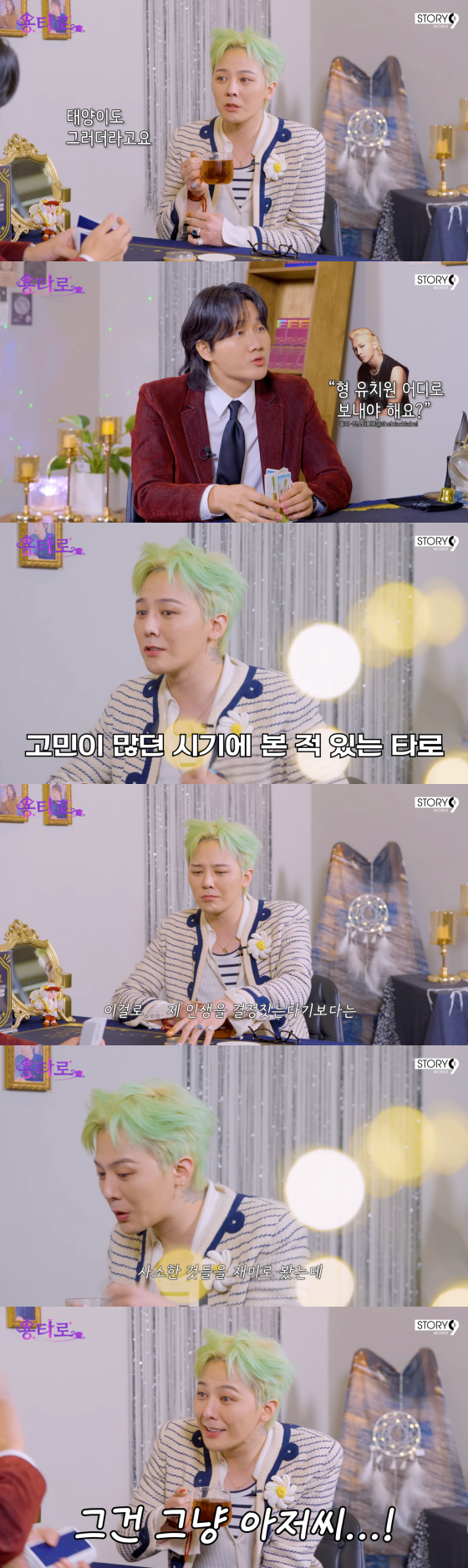 그러자 이용진은 "원래 타로를 보는 편이냐"고 질문했고, 지드래곤은 "본 적이 있다"고 밝혔다.