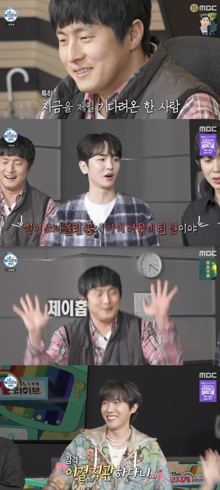 한편 제이홉은 기안84의 러브콜을 알고 있었냐는 질문에 "너무 잘 봤다. 연 날리고, 스튜디오에서 춤추고"라며 구체적으로 답했다. 그러자 기안84는 제이홉 앞에서 다시 한번 구애의 춤을 추며 제이홉 이름을 연달아 불렀고, 이를 직관한 제이홉은 폭소했다.