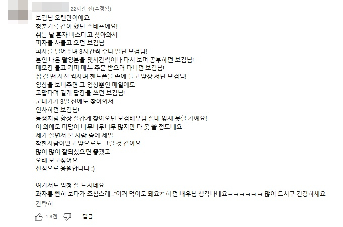 A씨의 글을 본 네티즌들은 "역시 파도 파도 미담만 나온다", "박보검이 박보검했네", "한결같은 사람 박보검 더 더 잘 돼라", "보검이는 요정이야" 등 감동한 반응을 보였다.
