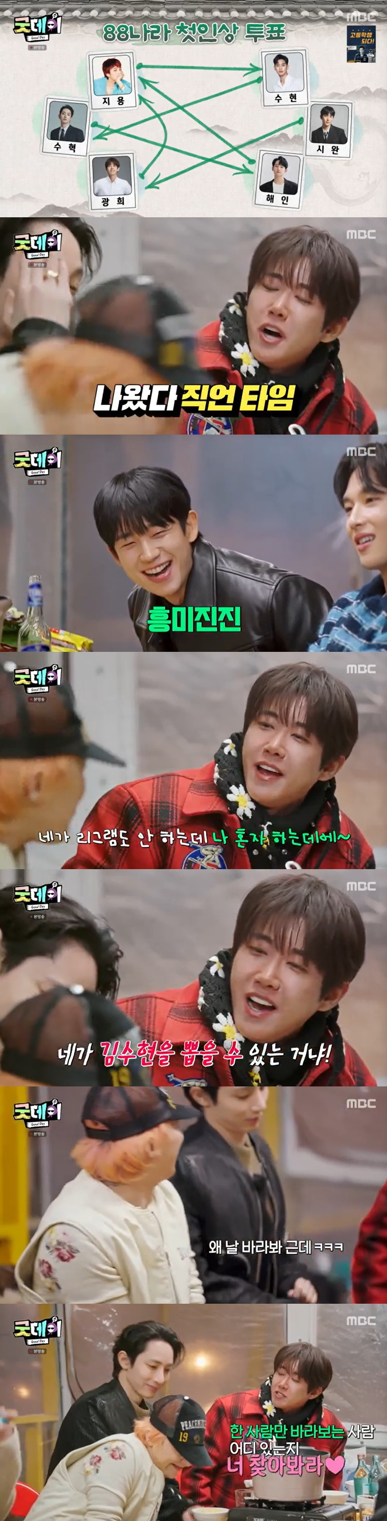 2일 방송된 MBC '굿데이'에서는 지드래곤을 중심으로 배우 김수현, 이수혁, 임시완, 황광희, 정해인까지 '나는 솔로' 콘셉트로 한자리에 모인 88 스타들의 만남이 계속됐다.