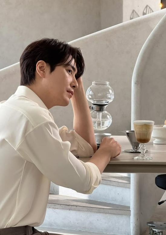 사진 속 이준혁은 한 커피 브랜드 광고 촬영 현장에서 날렵한 턱선을 뽐내고 있는 모습. 아이보리 컬러의 셔츠를 입은 채 특유의 부드러운 미소를 짓고 있는 이준혁은 또렷한 이목구비와 탄탄한 피지컬을 자랑하며 보는 이들을 감탄케 만들었다.
