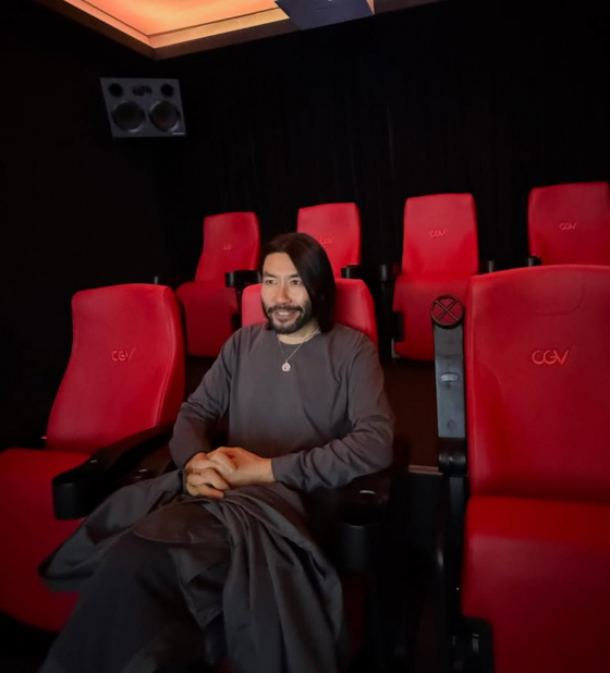 공개한 사진에는 작은 상영관에서 정면을 바라보고 있는 노홍철의 모습이 담겼다.