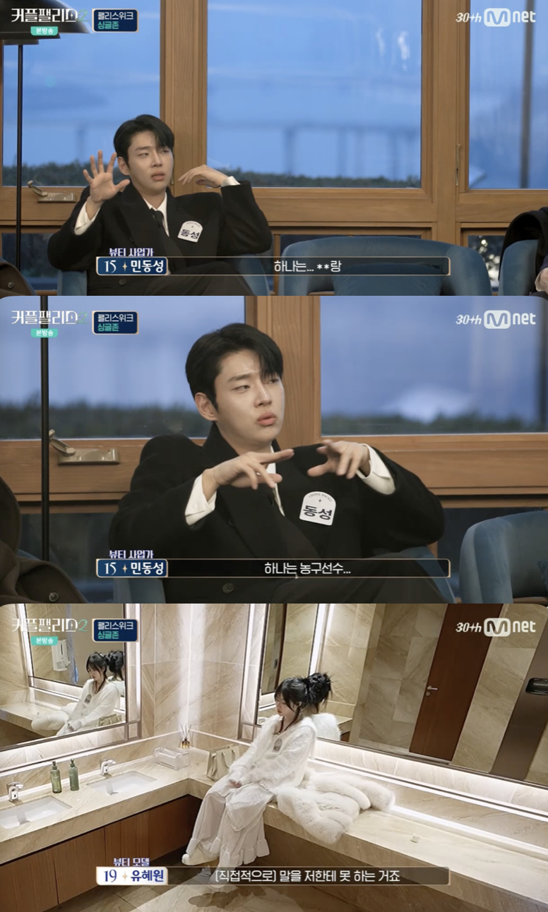 그 가운데 뷰티 사업가 남자 15번, 민동성은 싱글존 라운지에서 남성들에게 "(19번, 유혜원 님이) 엄청 유명하신 분인데 안 좋은 소문이 있다. 근데 기사화된 게 2개가 있다"라며 유혜원의 소문에 관해 이야기를 꺼냈다.