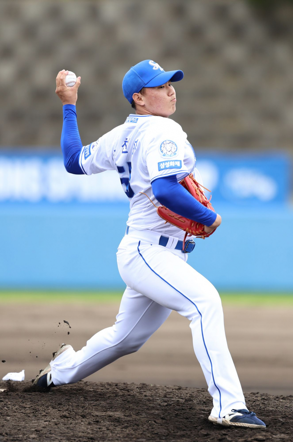 좌완 신인 배찬승이 스프링캠프에서 확실하게 눈도장을 찍었다. 특히 일본 오키나와 스프링캠프 실전에서 좋은 모습을 보였다. 지난 2일에는 '디펜딩 챔피언' KIA 타이거즈를 상대로 1이닝 3탈삼진 퍼펙트 투구를 펼쳤다.