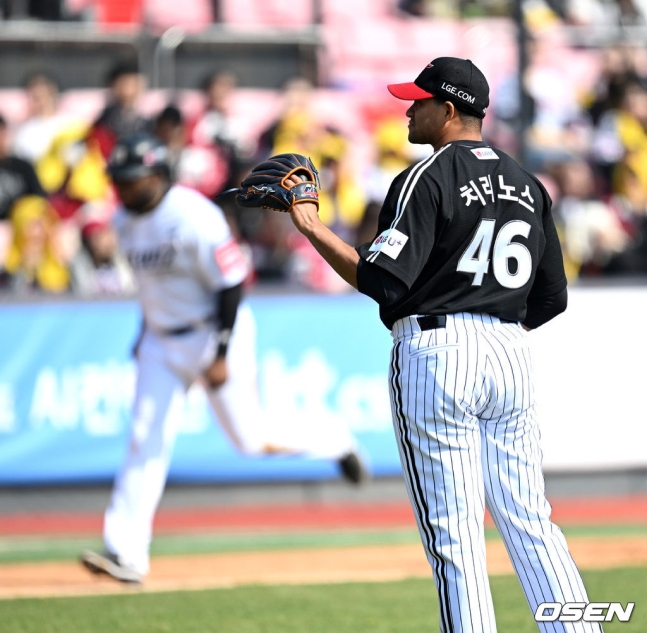 LG는 마운드에서 아쉬움을 보였다. 외국인 1선발 요니 치리노스가 3⅓이닝(61구) 동안 3피안타(1피홈런) 1볼넷 1탈삼진 3실점을 했다. 좀처럼 헛스윙을 유도하지 못하면서(6개) 승부를 어렵게 가져갔고 4회에는 홈런 포함 장타를 연달아 허용, 패전 투수가 됐다. 구원 등판한 정우영(⅓이닝)과 송승기(1⅓이닝)도 각각 두 차례 볼넷을 내주는 등 불안한 피칭을 했고, 김대현도 ⅔이닝 1피안타(1피홈런) 1볼넷 1탈삼진 2실점으로 부진했다.