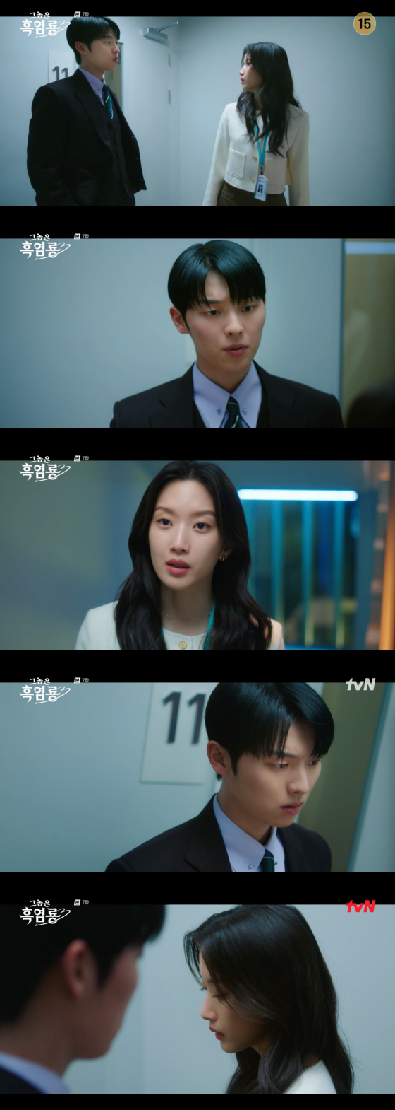 10일 방송된 tvN 월화드라마 '그놈은 흑염룡'에서는 백수정(문가영 분)이 반주연(최현욱 분)에게 선을 긋는 모습이 그려졌다.