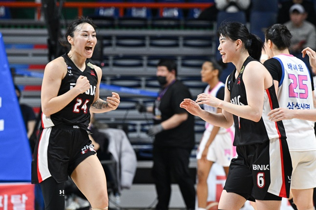 BNK는 11일 오후 7시 부산 사직실내체육관에서 열린 용인 삼성생명 블루밍스와 하나은행 2024~2025 여자프로농구 플레이오프(5전3선승제) 5차전에서 70-58 승리를 거뒀다.