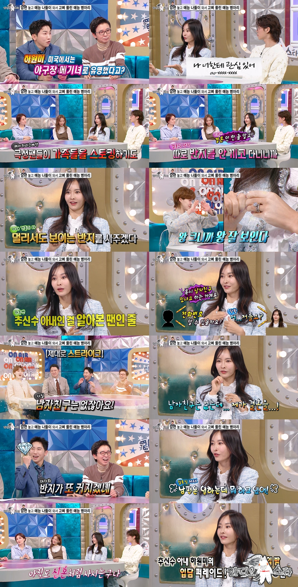 '라디오스타'에서 추신수의 아내 하원미가 남편을 응원하러 간 야구장에서 '대시 쪽지'를 받았던 사연을 전하며 질투심이 폭발한 추신수가 선물한 '대왕 반지'도 공개해 눈길을 사로잡는다.