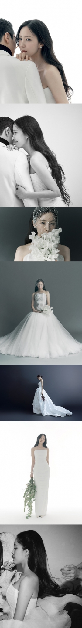 이와 함께 공개한 웨딩화보에서 효민은 아름다운 드레스 자태는 물론, 듬직한 예비신랑도 함께 베일을 벗었다.