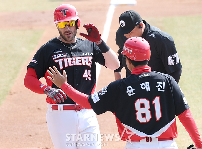 이날 KIA는 박찬호(유격수), 김도영(3루수), 나성범(우익수), 위즈덤(1루수), 최형우(지명타자), 김선빈(2루수), 이우성(좌익수), 김태군(포수), 최원준(중견수) 순으로 선발 타순을 꾸렸다. 선발 투수는 제임스 네일이었다. 줄곧 3번 타자로 나섰던 김도영이 2번 타순에 배치된 게 눈에 띄었다.
