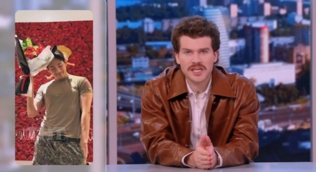 '모닝 ТНТ'에 소개된 사진은 지난달 23일 뷔가 인스타그램에 "김병장 생존신고하러 왔습니다.! D-107입니다"라는 글과 함께 게시한 것이다. 이 게시물은 2025년 인스타그램에 게재된 게시물에서 전 세계 남자 스타 중 최다 '좋아요'를 받을 정도로 큰 반향을 일으켰다.