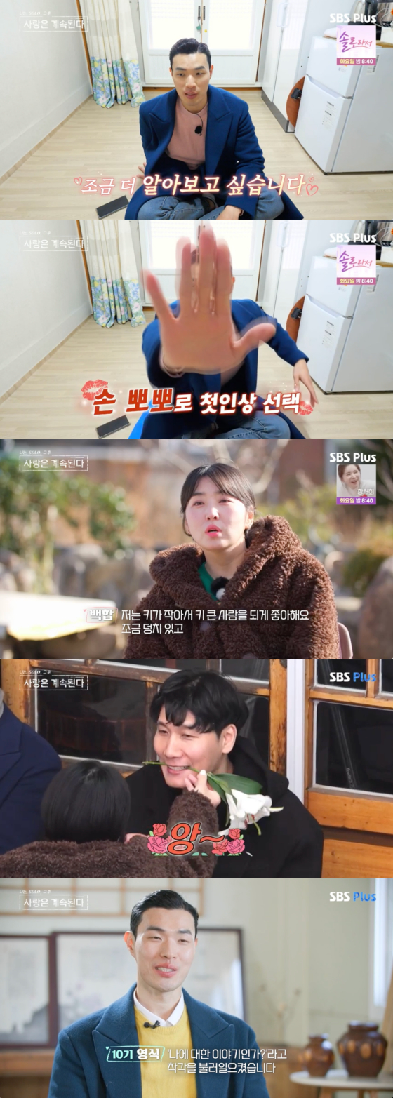 이날 10기 영식은 백합을 첫인상 선택했으나 백합은 14기 경수를 선택했다. 백합은 "100% 외모적인 호감이다. 제가 키가 작다 보니까 키 큰 분을 선호한다"고 14기 경수를 선택한 이유를 밝혔다.