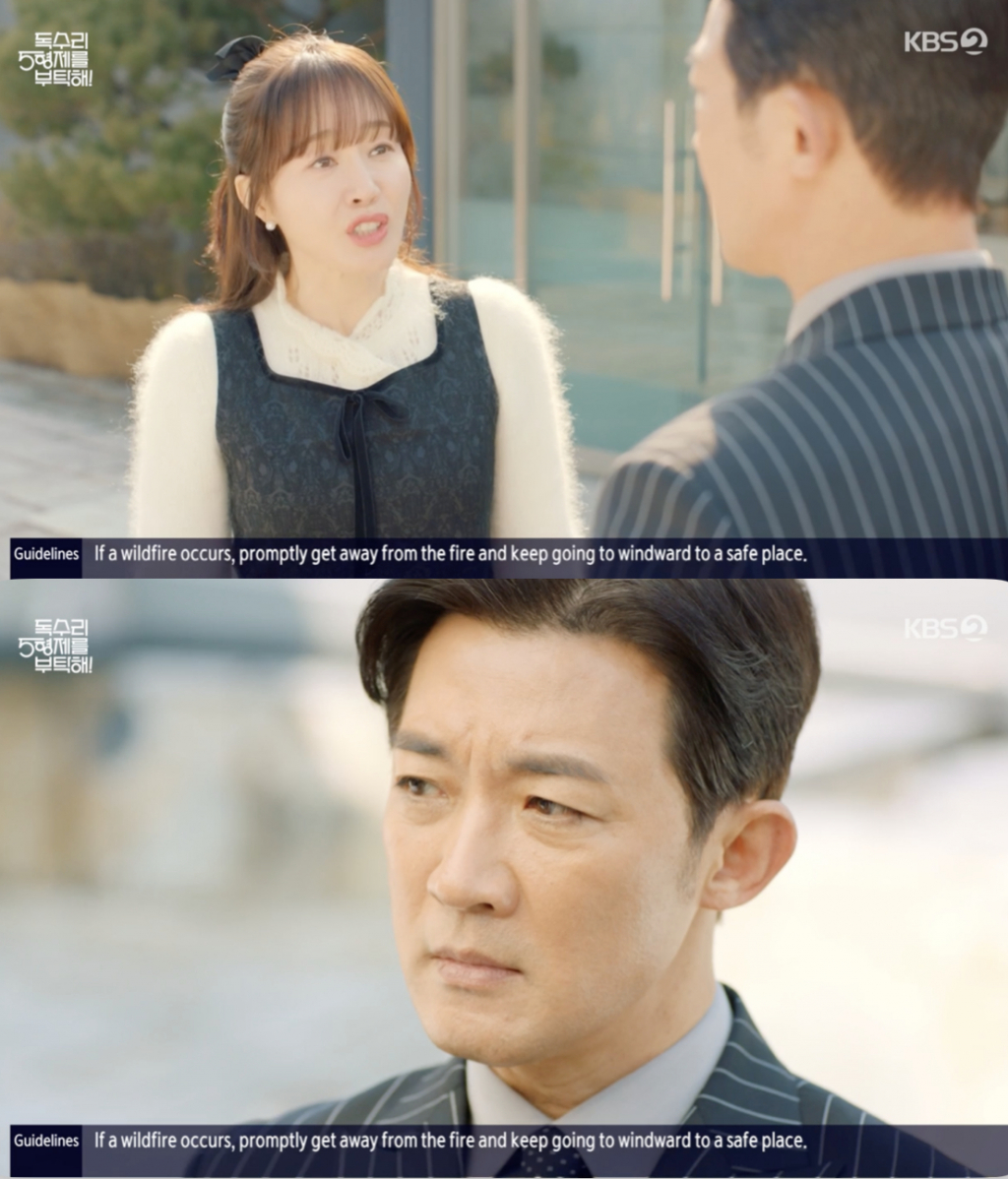 22일 방송된 KBS2TV 주말 드라마 '독수리를 5형제를 부탁해!'에서는 한동석(안재욱 분)이 마광숙(엄지원 분)과 엘리베이터에서 우연히 마주친 모습이 그려졌다.