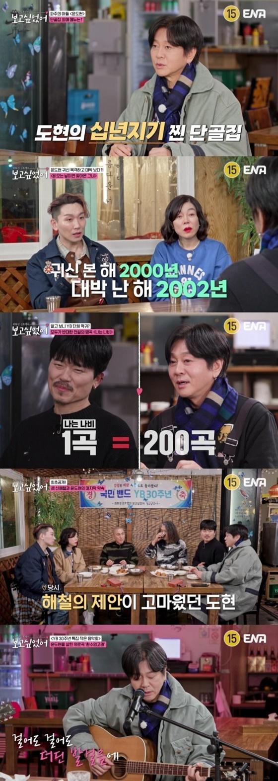 지난 22일 방송된 ENA 예능 프로그램 '최화정 김호영의 보고싶었어' 3회에서는 대한민국 록 밴드의 대명사 YB 리더 윤도현이 MC 최화정과 김호영을 비롯, YB 멤버 전원을 자신의 찐 단골집으로 초대했다.