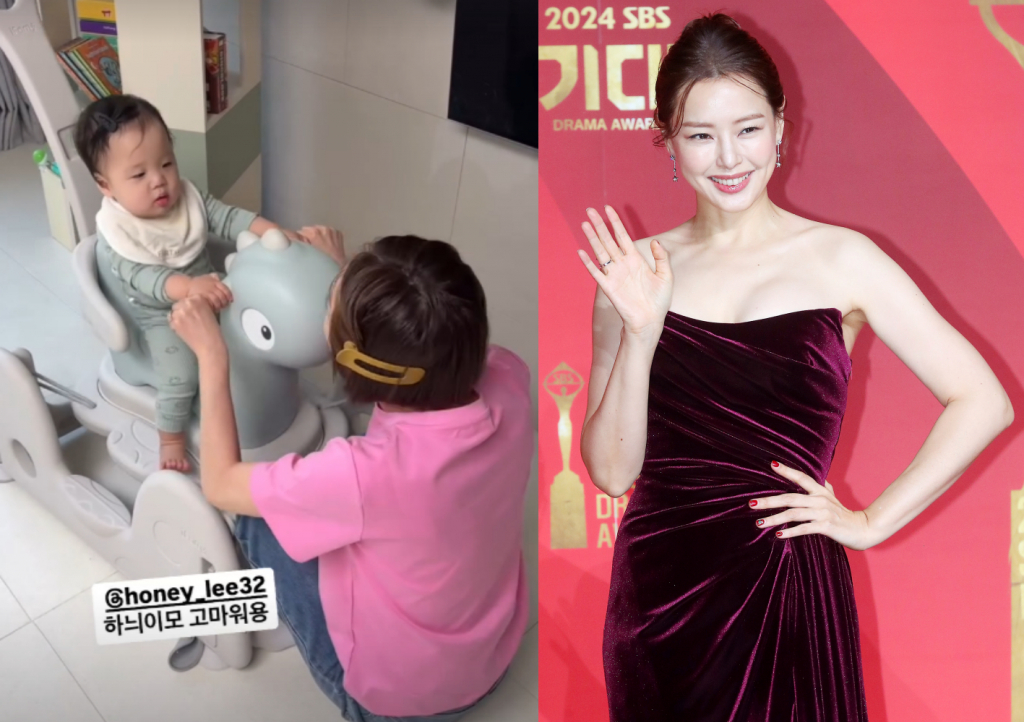공개된 영상 속에는 스프링 카를 타고 있는 황보라 아들과 그를 흐뭇하게 지켜보는 황보라의 모습이 담겨있어 눈길을 끈다. 황보라는 이하늬의 SNS 계정을 태그했고, 이 장난감은 이하늬가 황보라 아들에게 선물해 준 것으로 보인다.