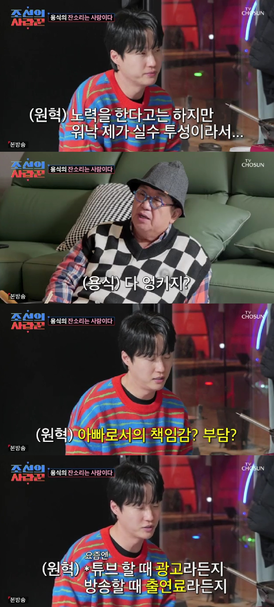 또한 원혁은 "요즘 개인적인 고민이 있다. 팔복이가 태어나다 보니까 아빠의 책임감과 부담이 있다"면서 "육아는 현실이고, 다 돈이다 보니까. 사실 그동안 아버님이랑 수민이랑 일하면서 물질적인 얘기를 한 번도 궁금해한 적이 없었는데 요즘 유튜브 할 때 광고라든지, 방송할 때 출연료 등에 대해 조금씩 눈에 보이고 귀에 들리고 한다"고 밝혔다.