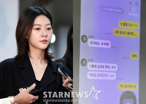이에 따르면 김수현은 김새론의 "난 촬영 다시ㅜㅜ 금방 끝내고 올게여(요)"라는 말에 "갔다 와요.. ㅎㅎ"라며 하트 이모티콘을 보냈다.