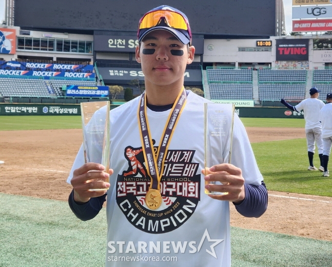 서울고가 7년 만에 전국대회에서 우승 트로피를 들어올렸다. 놀랍게도 투타 핵심에 2학년 김지우(17)가 있었다.